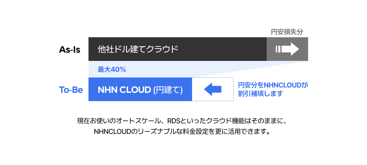 NHNクラウドではこうした状況を受け、日本円建て料金体系の強みを活かし、円安で“損した分”を取り戻す特別施策を提供することにしました。