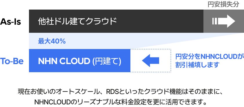 ※ AとBを比較した際の上昇率をNHN Cloud割引率としてお客様に還元します。